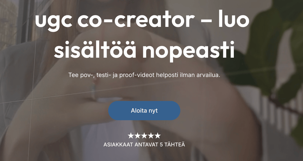 Uutta: Tehosta prosessiasi UGC-työkalullamme! Haluatko ottaa sisällöntuotannon omiin käsiisi? Tarjoamme käyttöösi innovatiivisen UGC-työkalun, joka auttaa sinua: